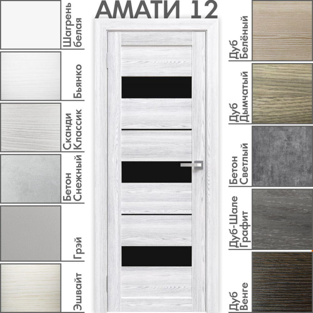 Межкомнатная дверь Экошпон Амати 12(Чёрное стекло) Сканди Классик