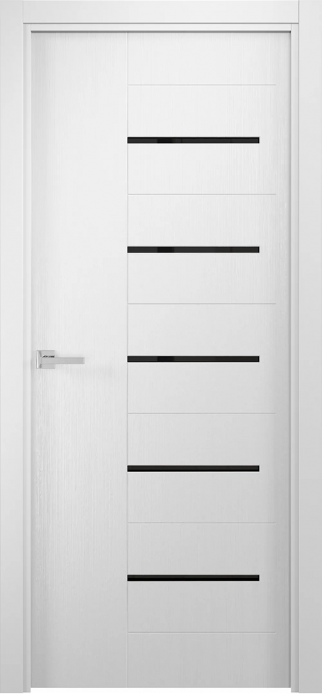 Межкомнатная царговая дверь Квадро 20 с черным стеклом и вертикальными линиями