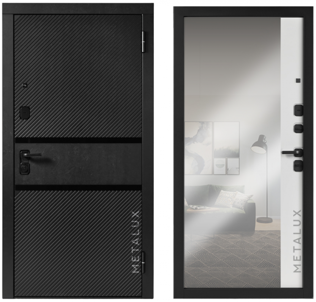 | ОСОБЕННОСТИ КОНСТРУКЦИИ | • Дополнительную жесткость конструкции придает уникальное расположение ребер (2 вертикальных, 2 горизонтальных) • Усиленные петли на подшипниках • Усиление замковой части металлическим карманом • Усиление зоны петель легированным металлом квадратного сечения • Полотно двери оснащено мощными противосъемными ригелями диаметром 16 мм (3 шт.) • Особый профиль полотна. Края полотна завальцованы, что придает дополнительную жесткость и исключает вскрытие двери силовым отжимом • Безмолдинговая система крепления внутренней панели позволяет добиться безупречного внешнего вида изделия. Особая конфигурация профиля полотна дает возможность осуществить замену внутренней панели при необходимости |