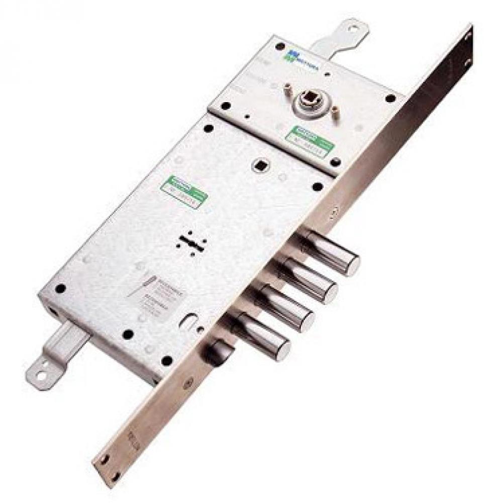Врезной электронный замок MOTTURA 49.771 из серии 49, выпускается под серийной маркой «MOTTURA Motronic». Имеет и электронную часть и механическую сувальдной конструкции. В составе 4 стальных ригеля и защёлка.